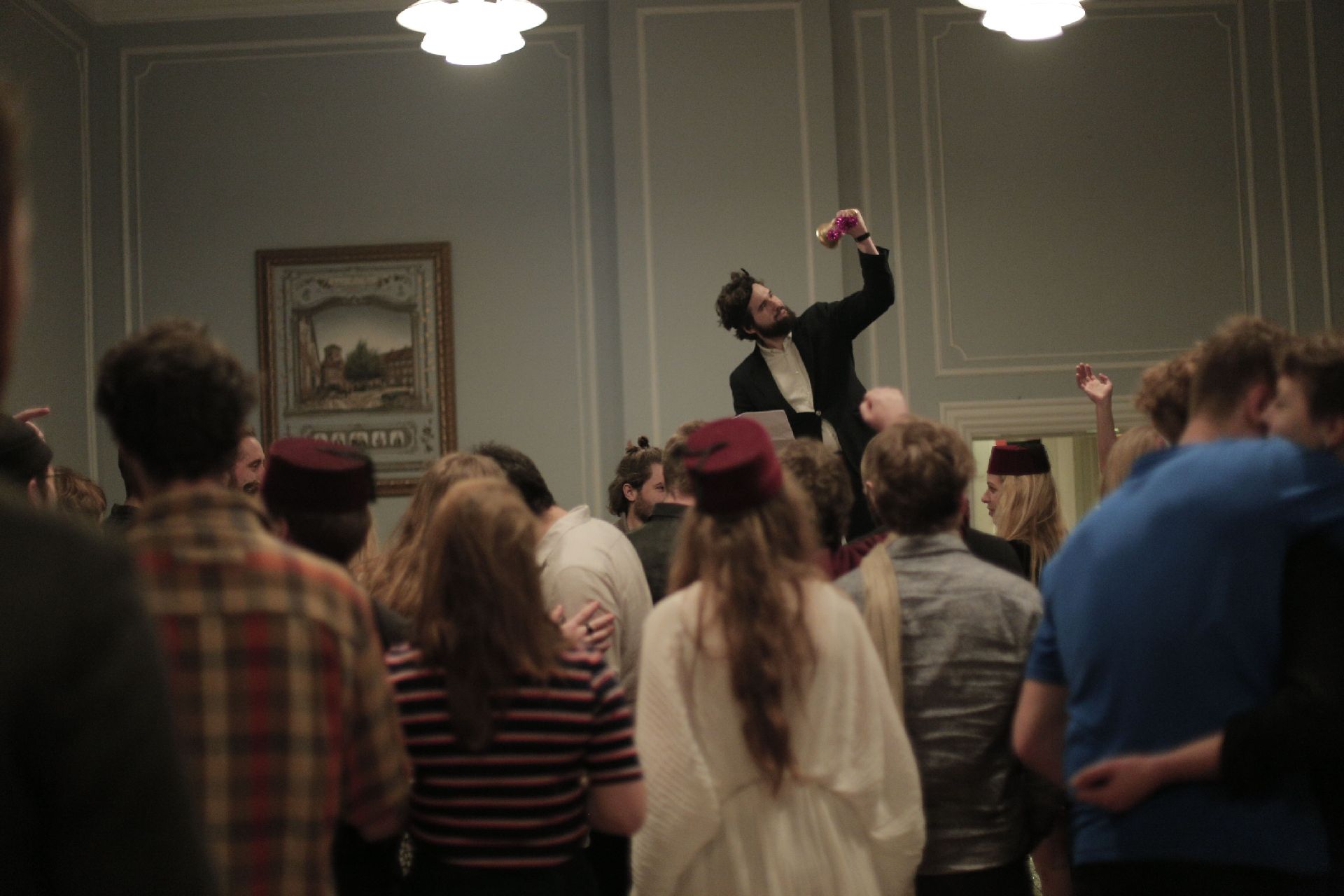 The Assembly itself happens at midnight in the Grand Hall, and is preceded by dinners in the Societies spread across Regensen, where negotiations take place in order to secure certain posts. In this way, many deals are made before the official democratic vote, but the night often brings surprises.